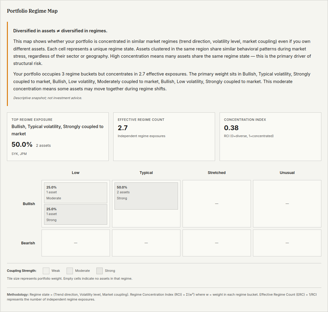 A portfolio can hold many assets and still fail together if those assets share the same market regime.